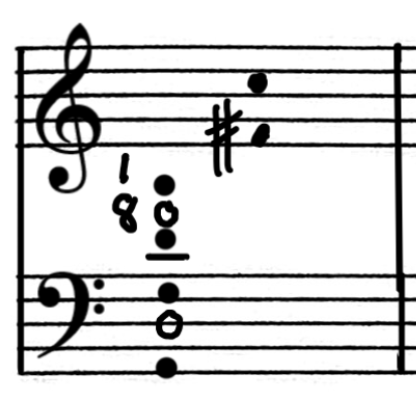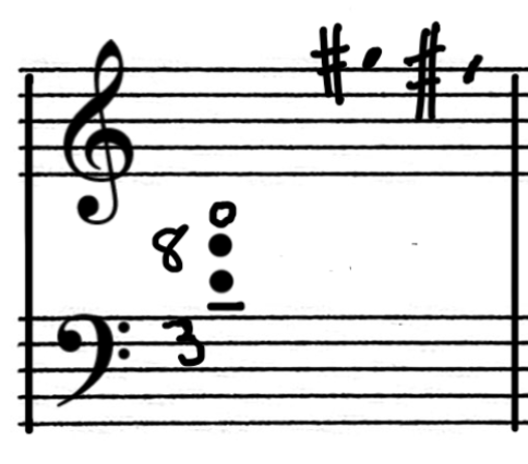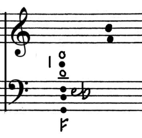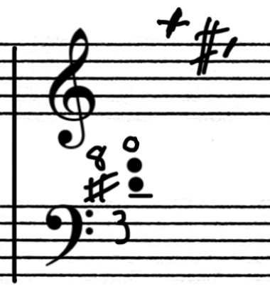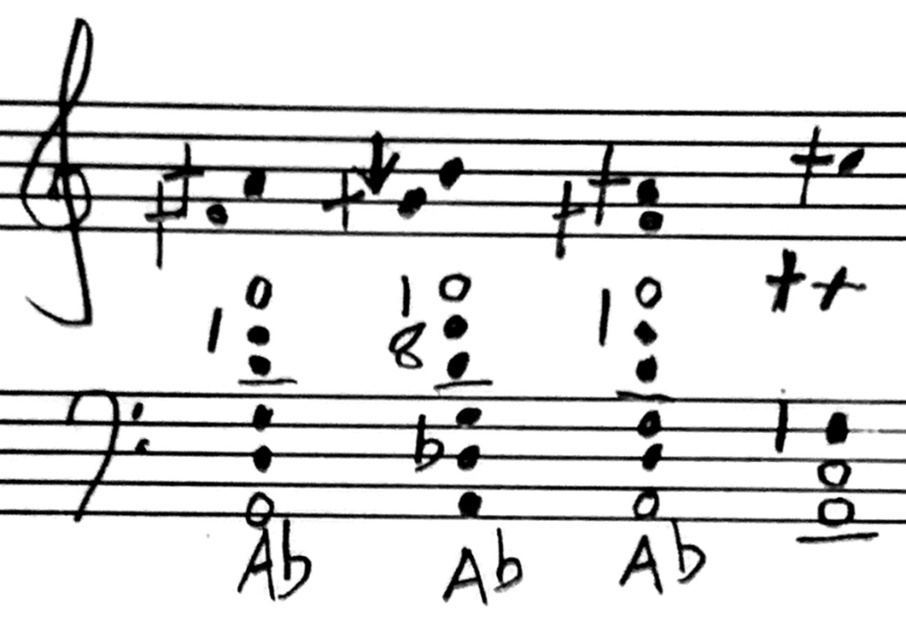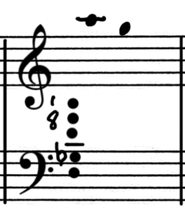 Dyads on the contraforte are possible but only have a dynamic range between pianissimo and piano. I use a very tight embouchure with equal lip pressure at the back of the reed to execute them. Below is an example of a mezzo-piano dyad progression with the fingerings: Dyads #1